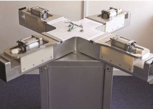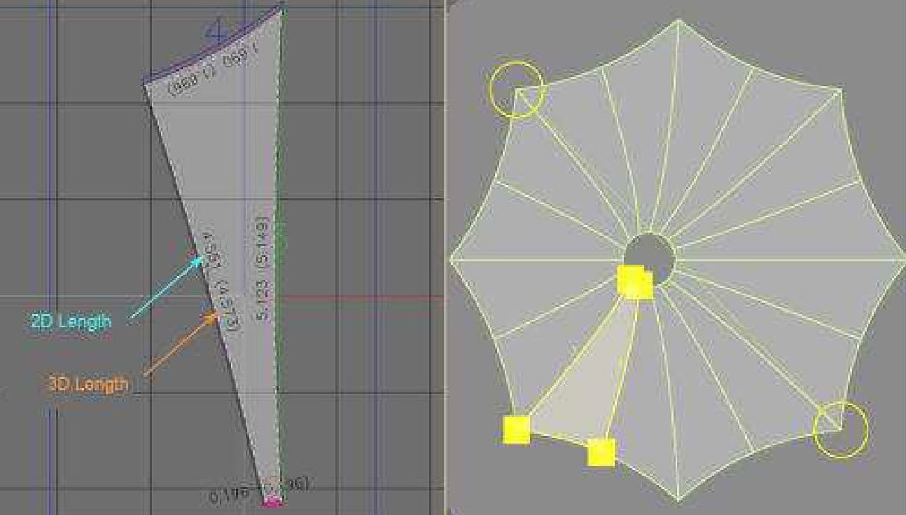 إلغاء الارتخاء تتمتع كل مادة نسيجية مستخدمة في المنشآت الشدّية بخصائص تمدد مختلفة، ولكن الأهم من ذلك أنها لا تتعرض للزحف (الارتخاء المستمر) بمرور الوقت. في شركة “Base Structures”، يتم اختبار كل لفة قماش في منصة الاختبار ثنائية المحاور الخاصة بنا، وذلك بتطبيق أحمال التصميم ذاتها التي سيتم شد المظلة الفعلية وفقاً لها. إن مقدار تمدد النسيج يتم إدخاله مجدداً في عملية “تعويض” بترونات النسيج عبر برامج إعداد البترونات؛ أي “تقليص” الحجم بحيث يتناسب القماش تماماً عند شده إلى النقطة المرجعية المطلوبة. يضمن هذا الشد المسبق عدم حدوث تراكم للمياه (تجمع مياه الأمطار) حتى تحت أحمال الثلوج بمجرد بدئها في الذوبان. يبلغ عامل الأمان المستخدم لاختيار وزن القماش حوالي 1:6 بناءً على أقصى أحمال التصميم.